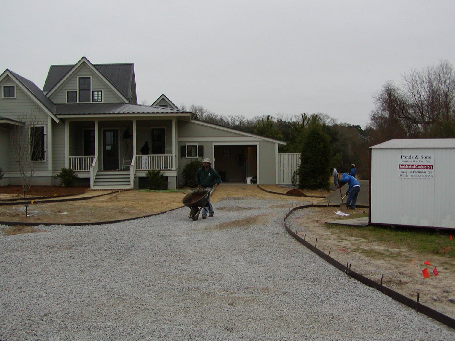 January 26, 2009 -- The quaint little building on the right has been my home for the past six months. It will be removed tomorrow. The gravel in the drive is a base for the crush and run. You can see a pile of it just to the left of our office. |