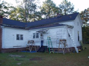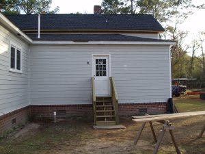 The rear of the historic residence has Hardie siding installed. It is now finished on the outside.