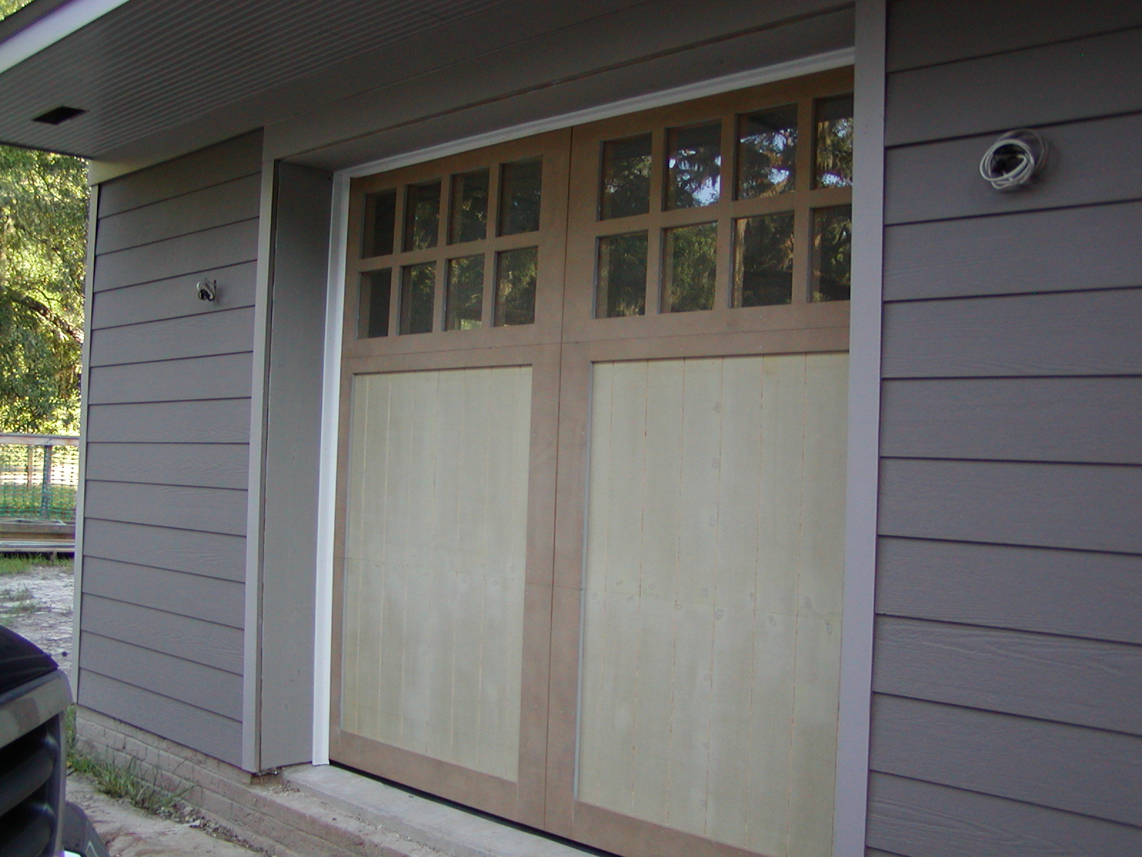 September 6, 2007 -- The garage doors are installed. They need to be painted and the garage door operator needs to be finished. | ![]() |