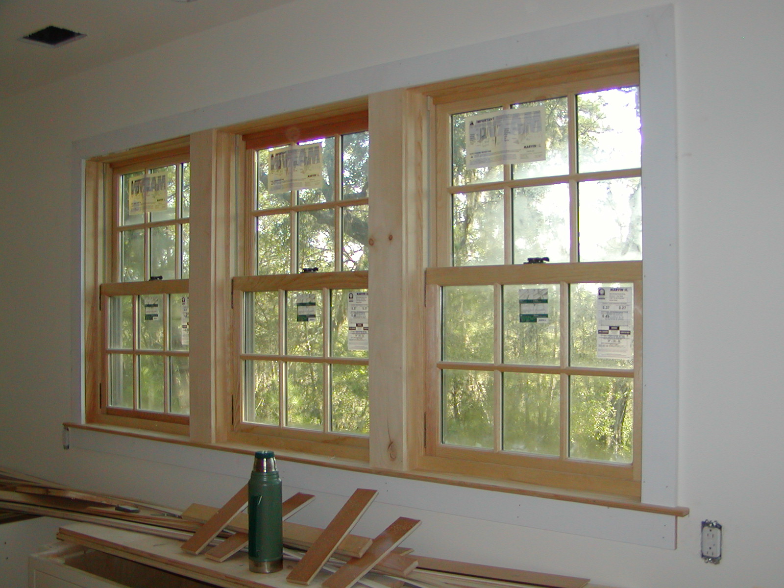 September 10, 2007 -- The kitchen window has trim installed on it. The kitchen sink will be installed under the windows. | ![]() |