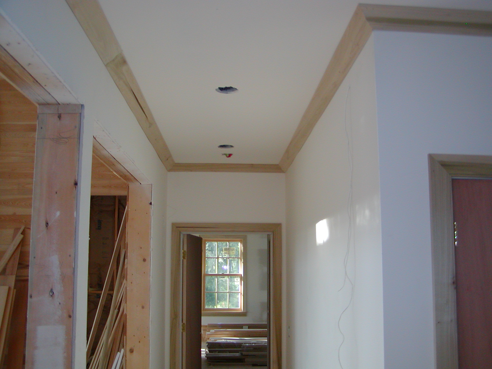 September 13, 2007 -- Crown molding is going up. This is the downstairs hallway looking into the master suite. | ![]() |