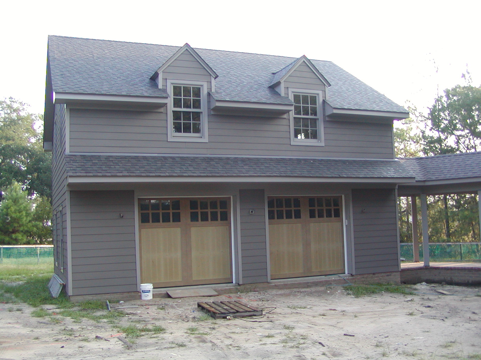 September 24, 2007 -- The garage is nearing completion. Both garage doors are closed so they can be painted on the inside. They also need paint on the outside. | ![]() |