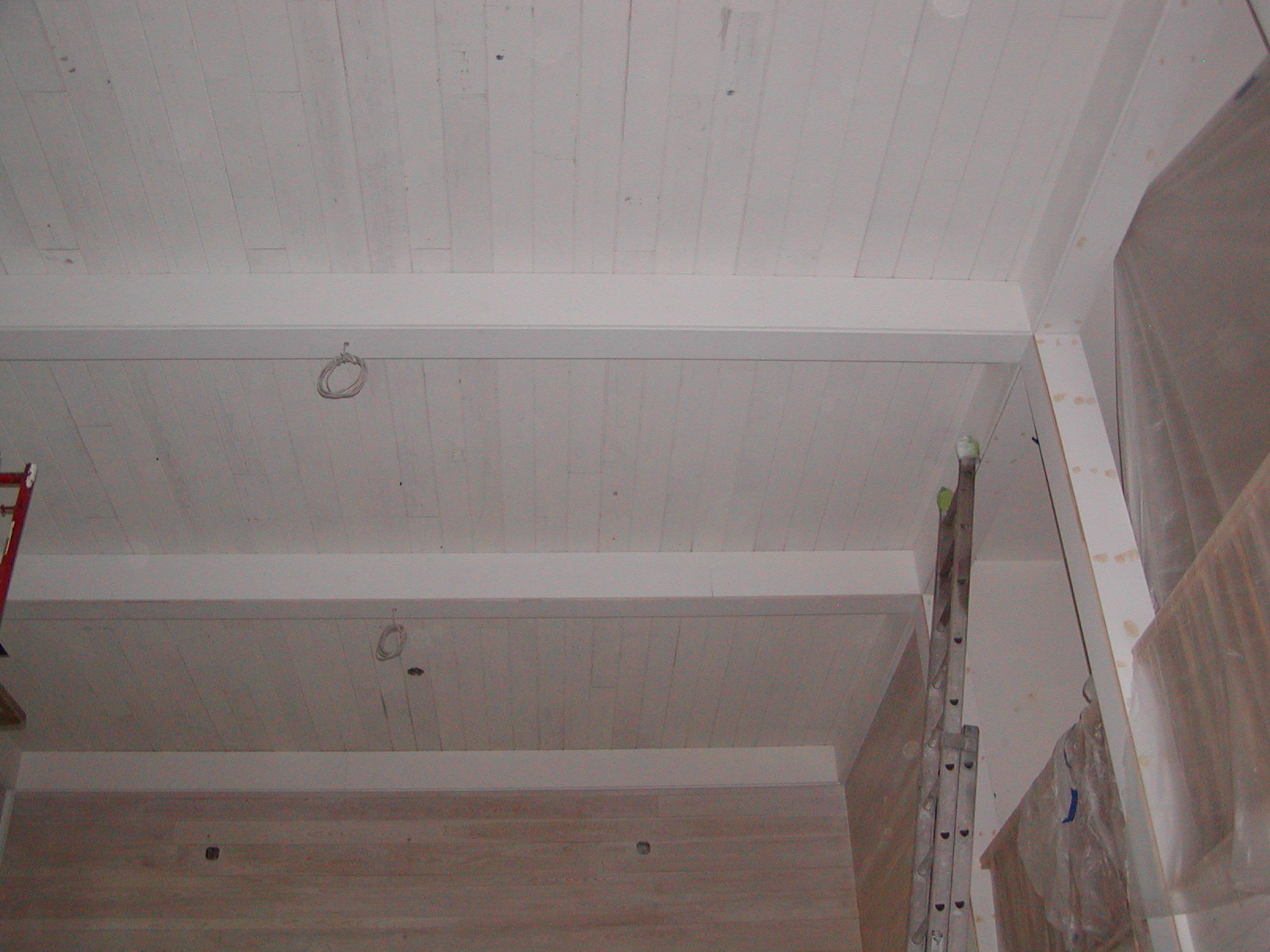 November 19, 2007 -- The ceiling of the Brays room has been primed and is ready to paint. Notice the painters' plastic hanging on right where painting is being done. | ![]() |