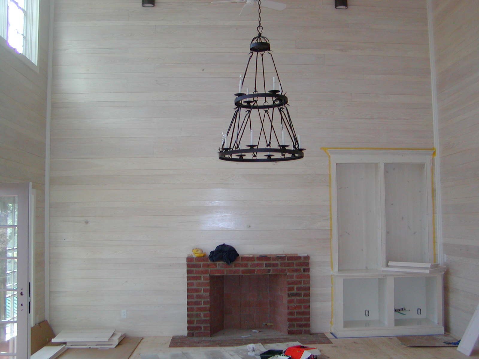 January 10, 2008 -- The scaffold is gone from the Brays room. In the next few days, the mantle will be started. The A/V cabinet on the right has yellow masking tape around it. | ![]() |