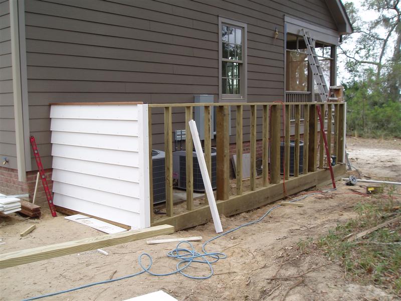 February 12, 2008 -- A fence is being built around the HVAC & electrical equipment. The siding lap matches the house. | ![]() |