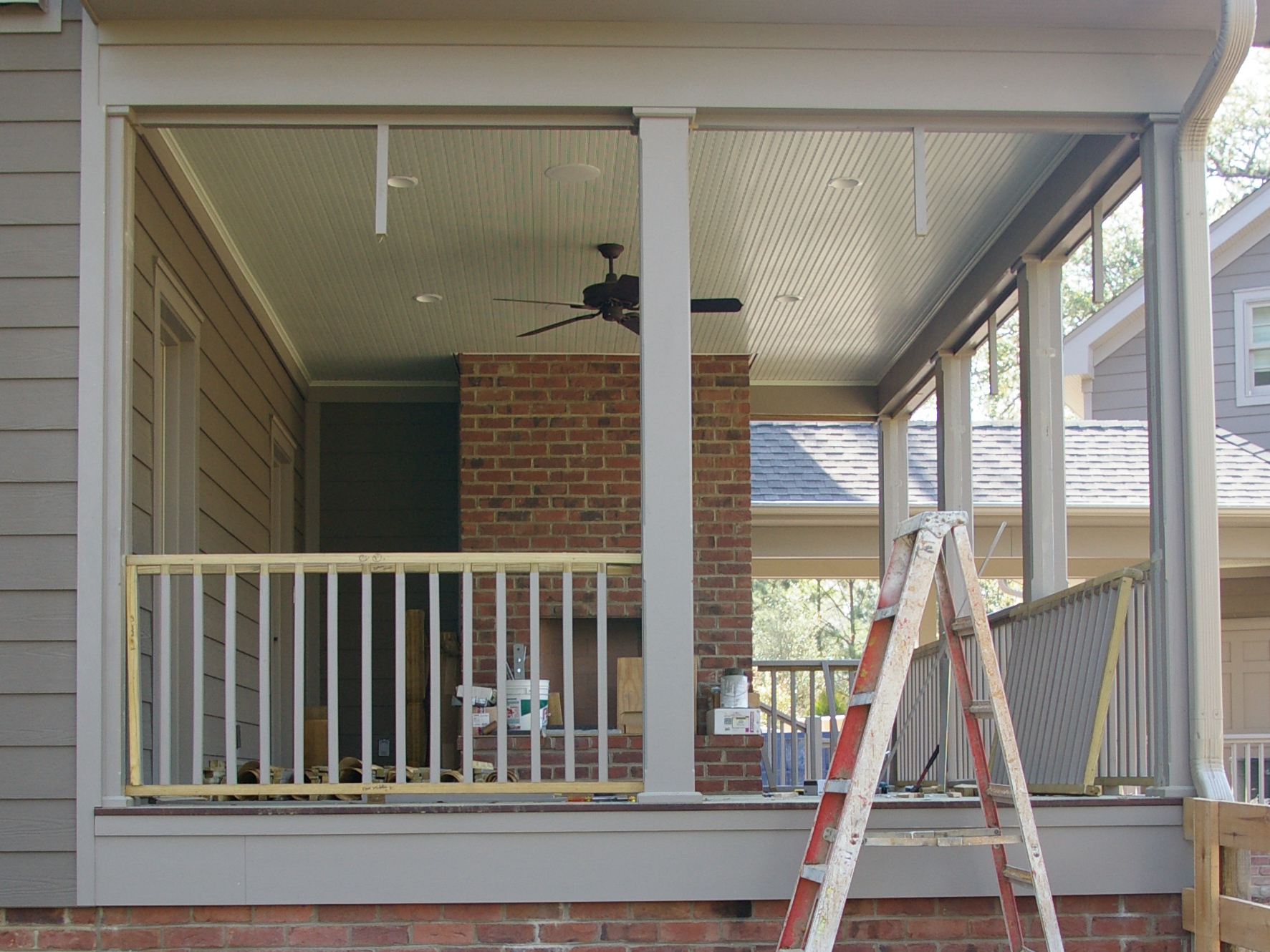 March 17, 2008 -- The screen was originally inside the hand rails and spindles. The railings are being turned around so the screen is on the outside. | ![]() |