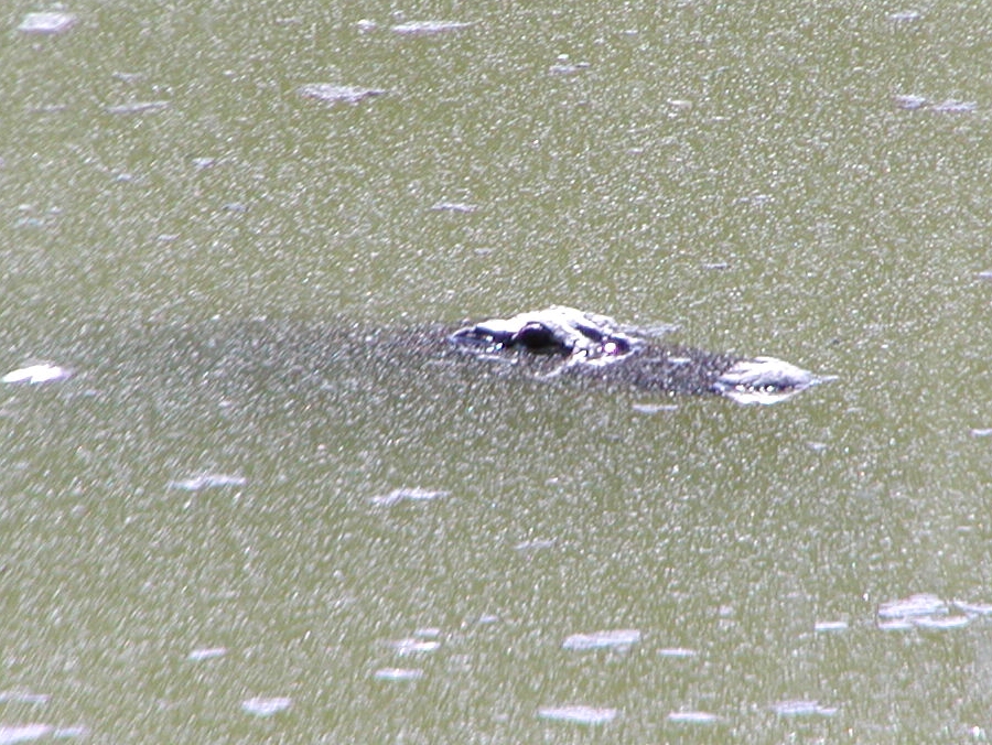 May 27, 2008 -- In a lake across the street from the Lord's Residence, a "critter", a 6' alligator is keeping a close eye on the fencing effort. | ![]() |