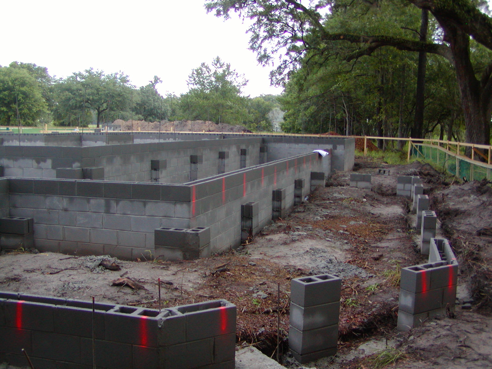 July 11, 2008 -- The rear of the house has three levels. The top level is the house itself. the next level is the porch. It will be framed, so the finished level of the porch will be much higher than it appears here. The lowest level will be a patio. It will also be framed, so the finished level will be higher than it appears. |