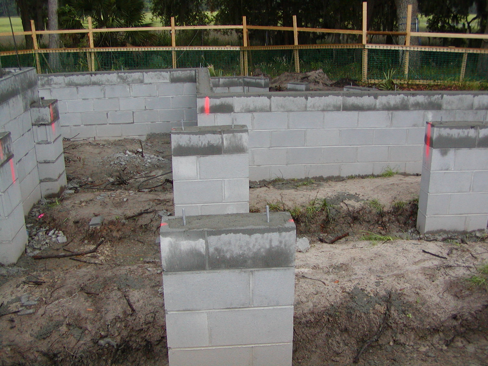 July 11, 2008 -- The screened porch has several piers for support. In the distance, you can see the curtain wall for the lower patio. | ![]() |