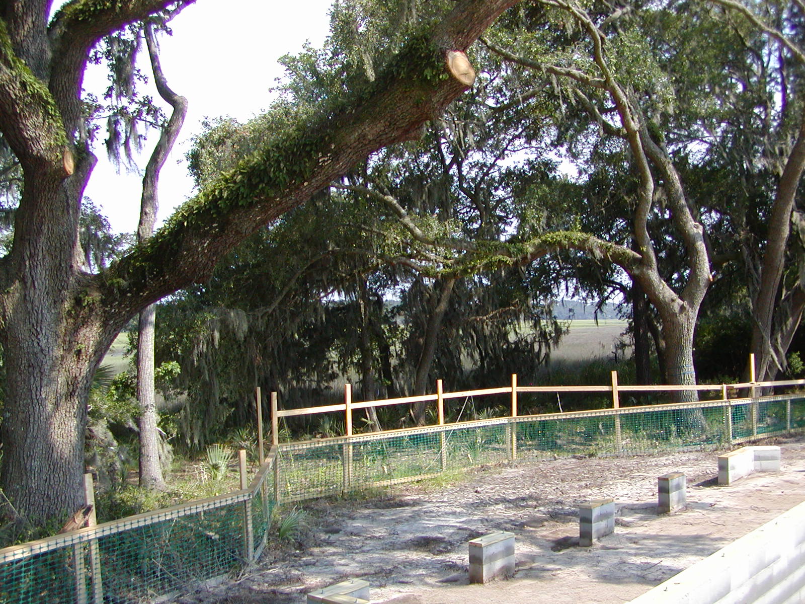 July 16, 2008 -- This is the approximate view from the master bedroom door onto the screen porch. The piers are where the lower patio will be built. | ![]() |