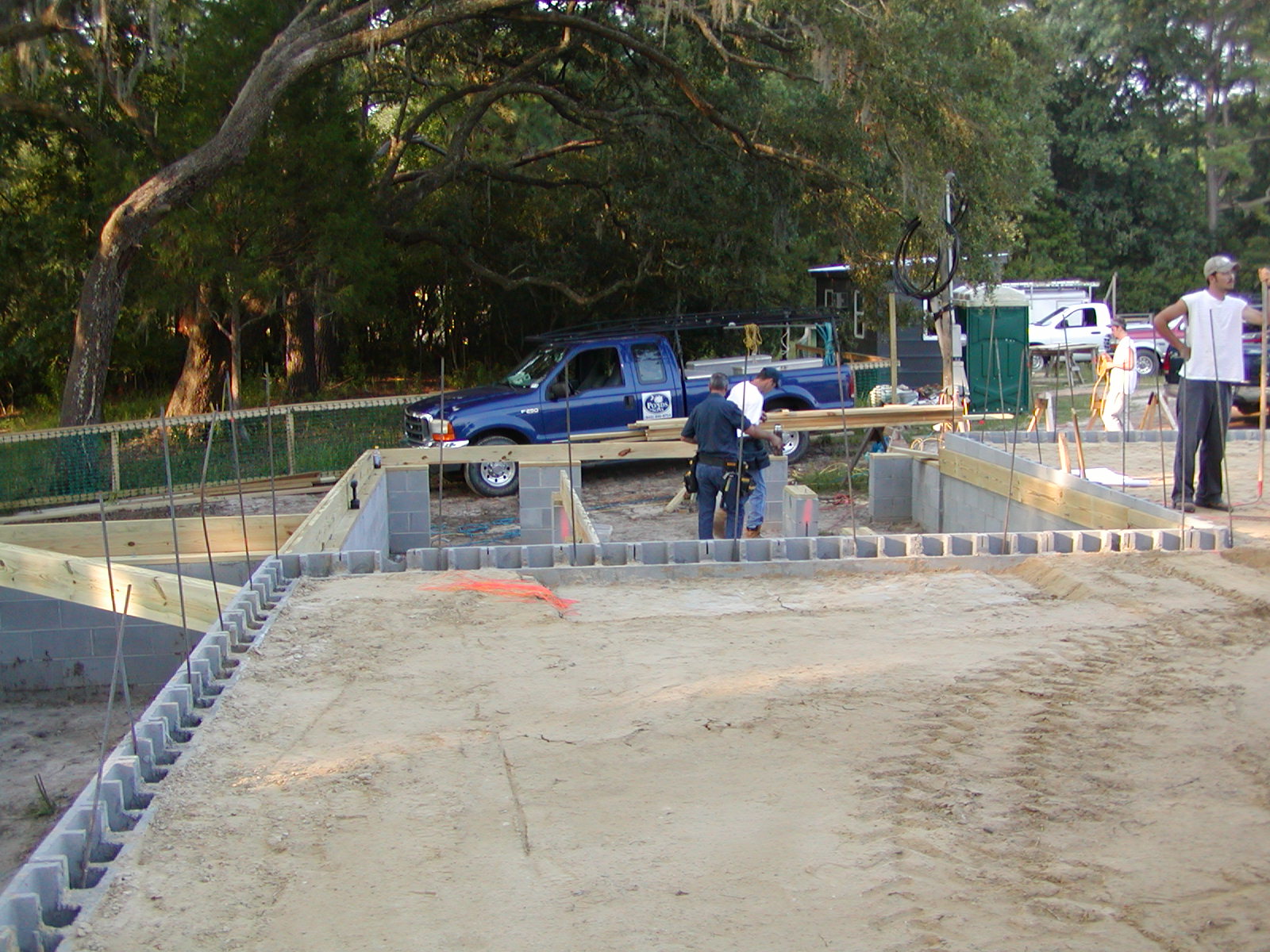 July 22, 2008 -- The porch framing is proceeding. The foundation for the chimney is visible in the center of the photo. | ![]() |