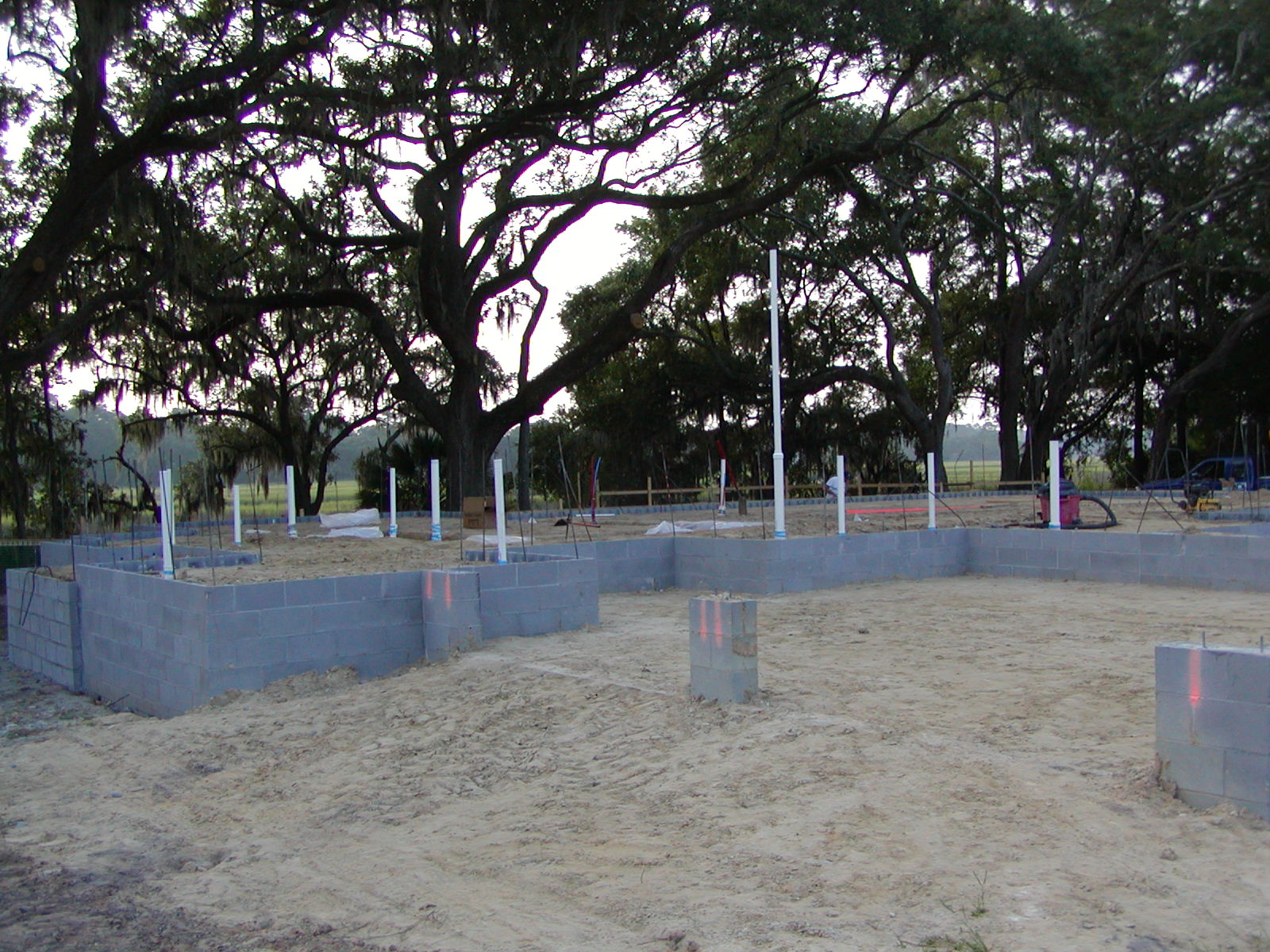 July 23, 2008 -- The plumbing pipes that are below the slab are installed. Rebar is also coming up from the walls. An inspection is scheduled for today. The slab will tentatively be poured on Friday. | ![]() |