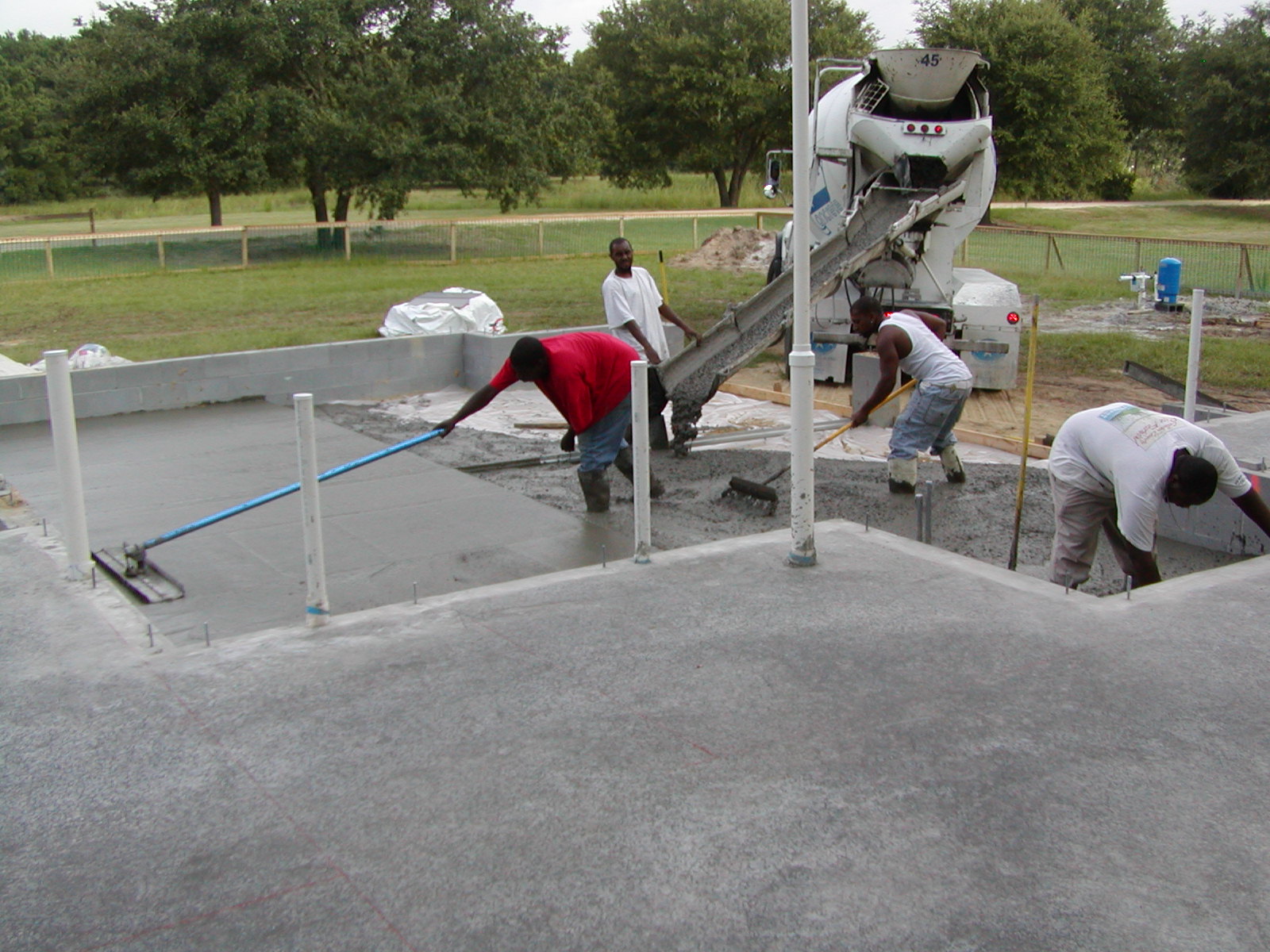 July 29, 2008 -- The garage slab is now being poured. This is the last of the house and garage slabs. There will be a couple of porches and other items poured later. | ![]() |