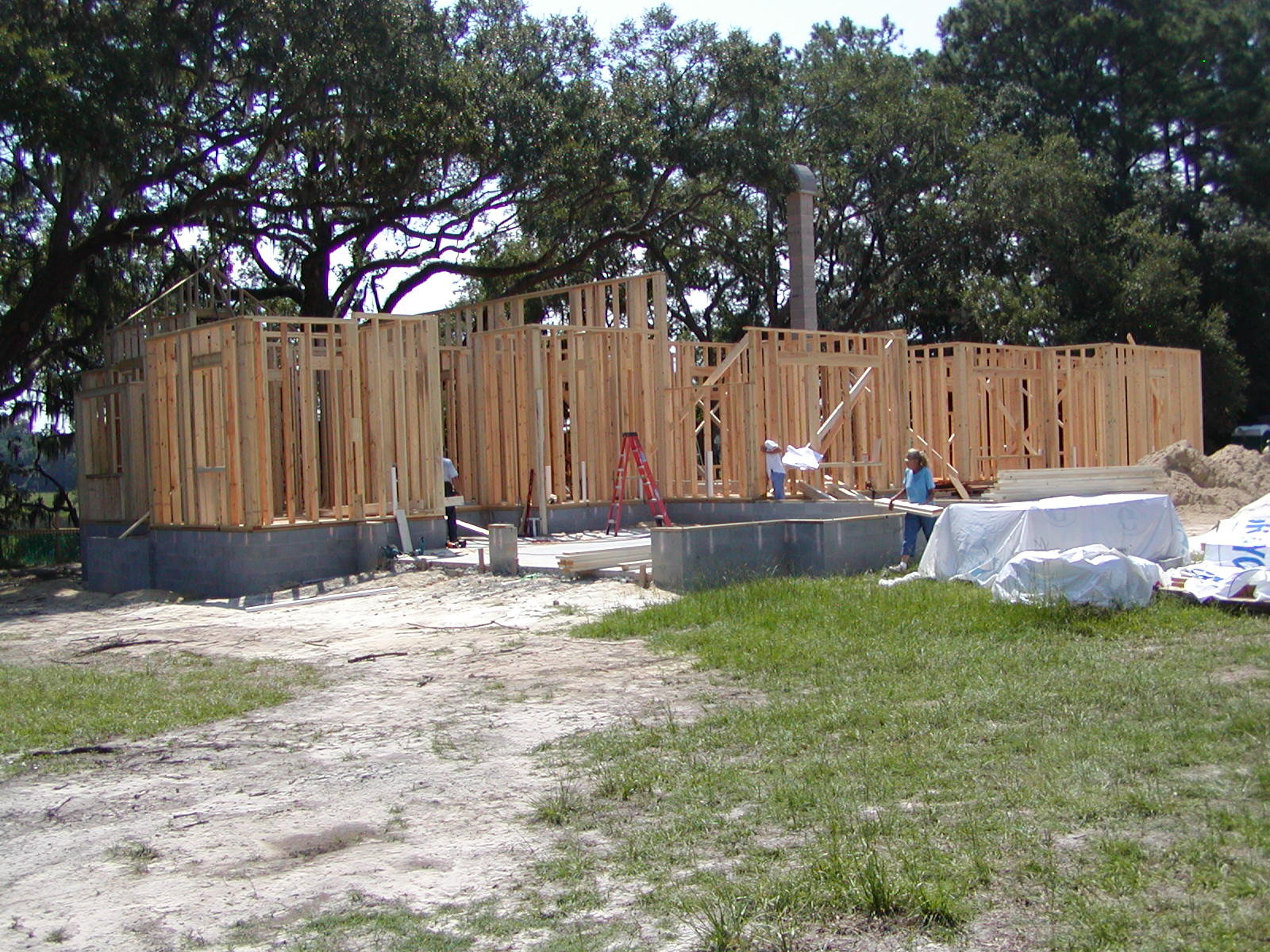 August 11, 2008 -- The walls of the house were up on Friday which was the scheduled goal. Today, garage walls will be erected. | ![]() |
