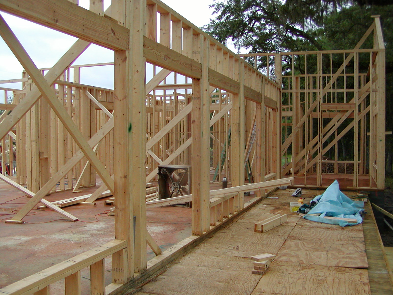 August 14, 2008 -- This is the back porch. The far door goes to the master bedroom. The doors and windows to the left go to the great room. Protective plywood is still covering the back porch. | ![]() |