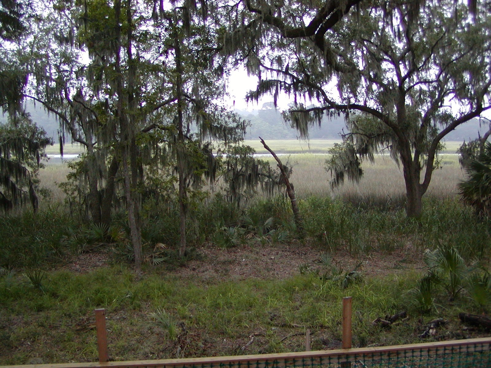 September 17, 2008 -- This is the view from the master suite looking east over the marsh. The tide is out, so there is not much water visible. | ![]() |