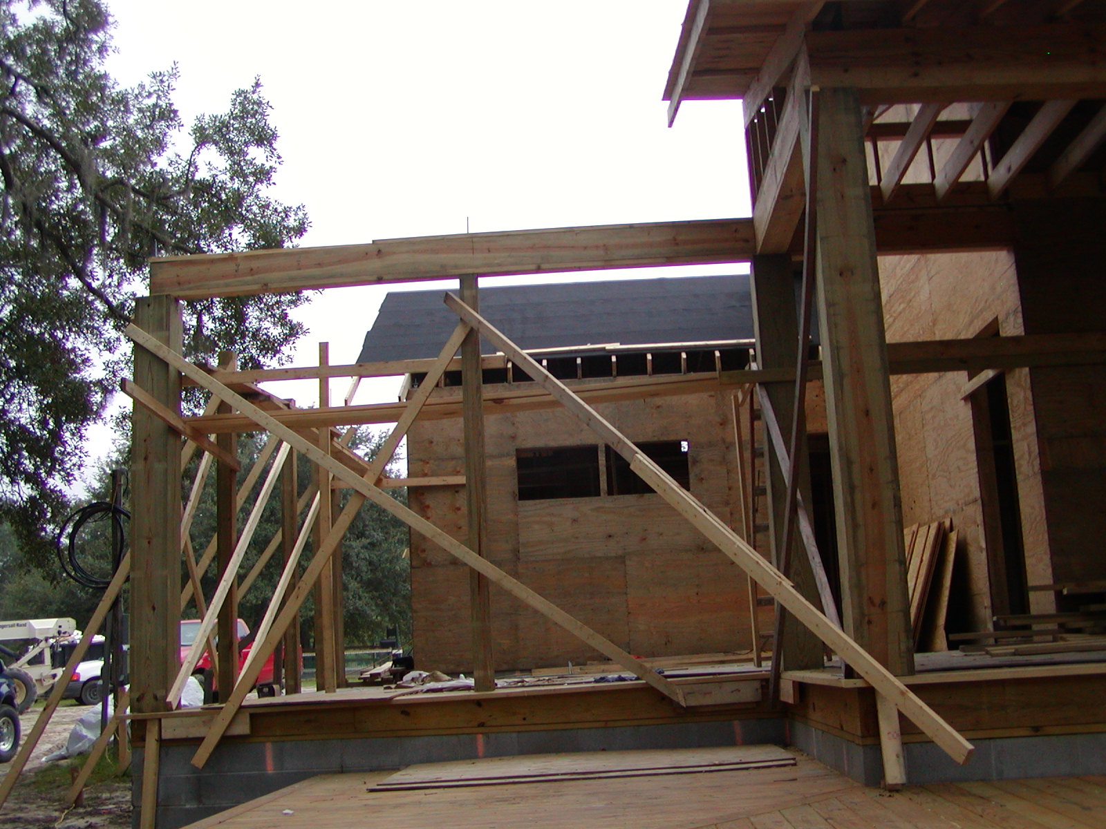 September 17, 2008 -- The posts and beams for the public screened porch are in place. Framing will begin on the porch roof soon. | ![]() |