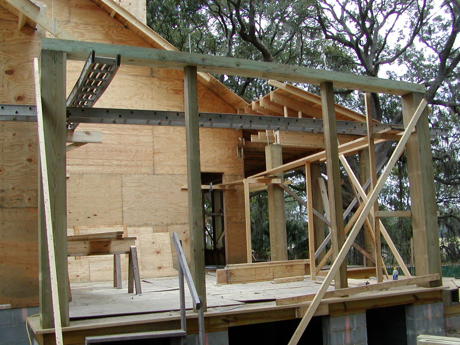 September 19, 2008 -- The beams are going up around the public screened porch. | ![]() |