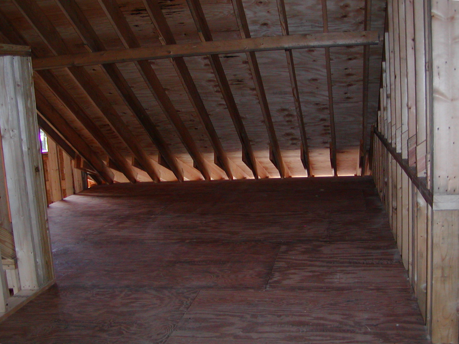 September 19, 2008 -- This a large storage area over the kitchen, hallway and office. It is accessed via the attic storage over the owner's entrance and master bath areas. All of the attic storage is accessed from Mary's studio. |
