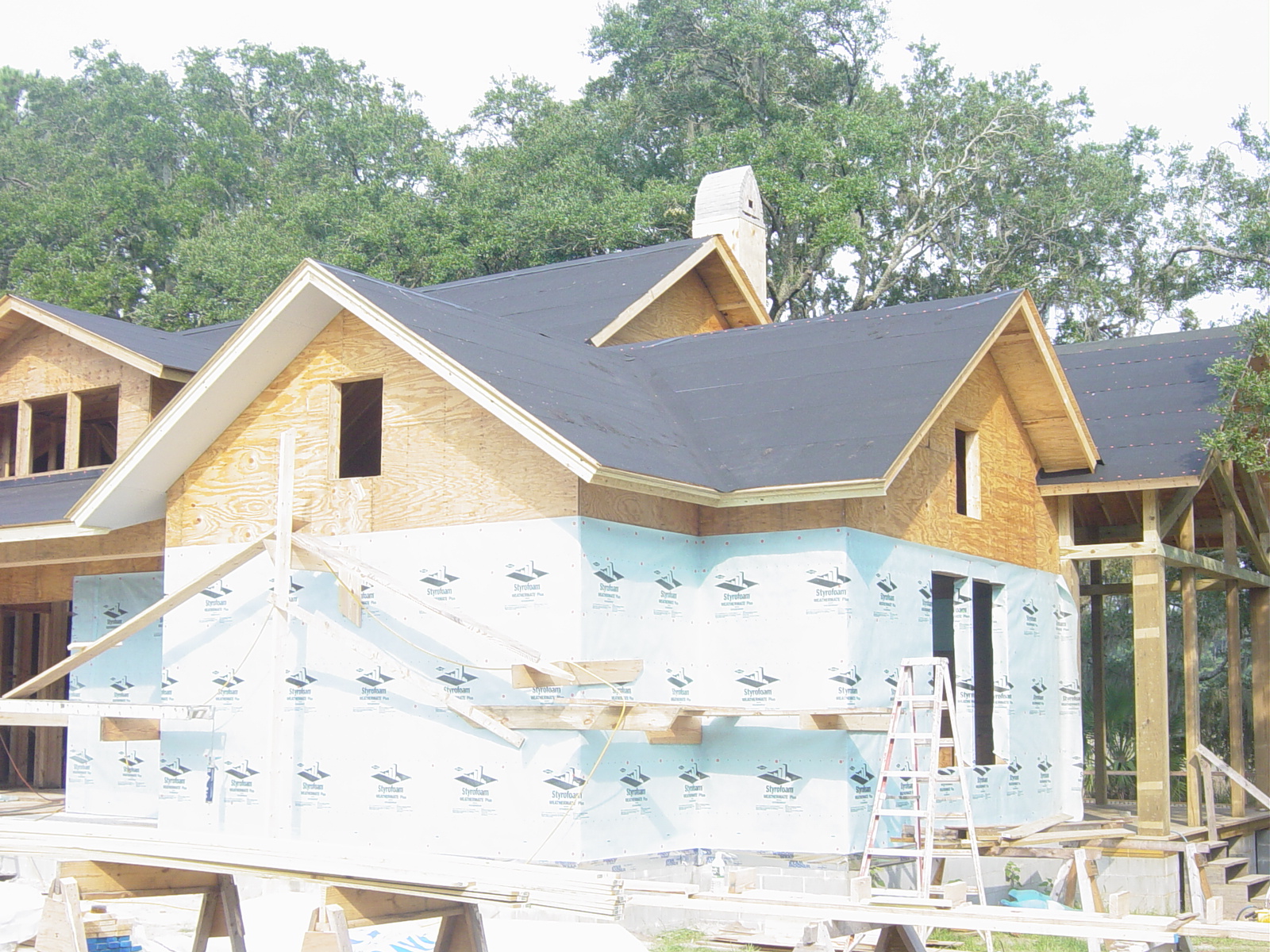 September 29, 2008 -- Here you can see the exterior trim is started. The soffit and facia goes on first. | ![]() |
