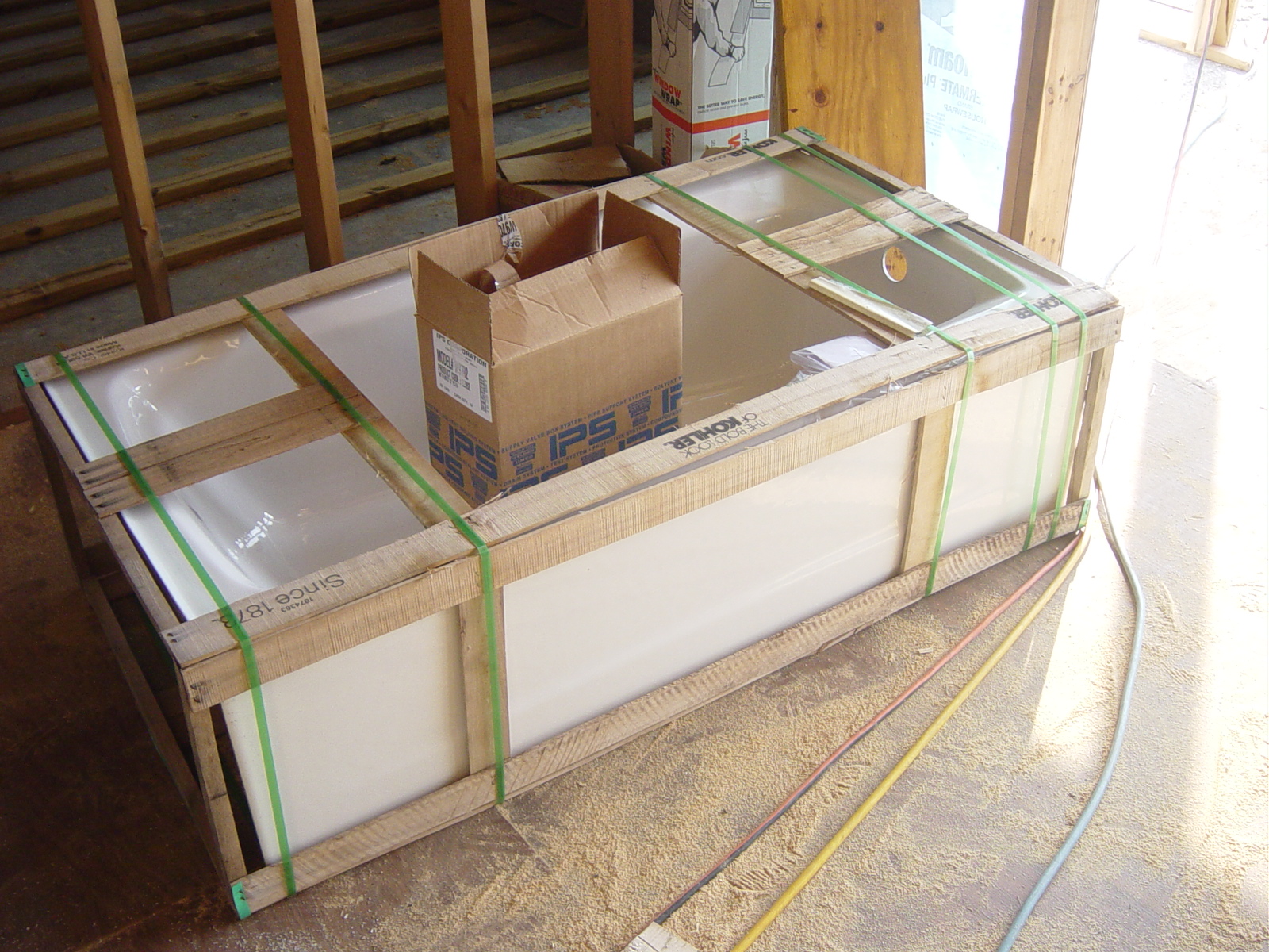 September 29, 2008 -- The tub & fixtures have arrived and are ready for installation. | ![]() |