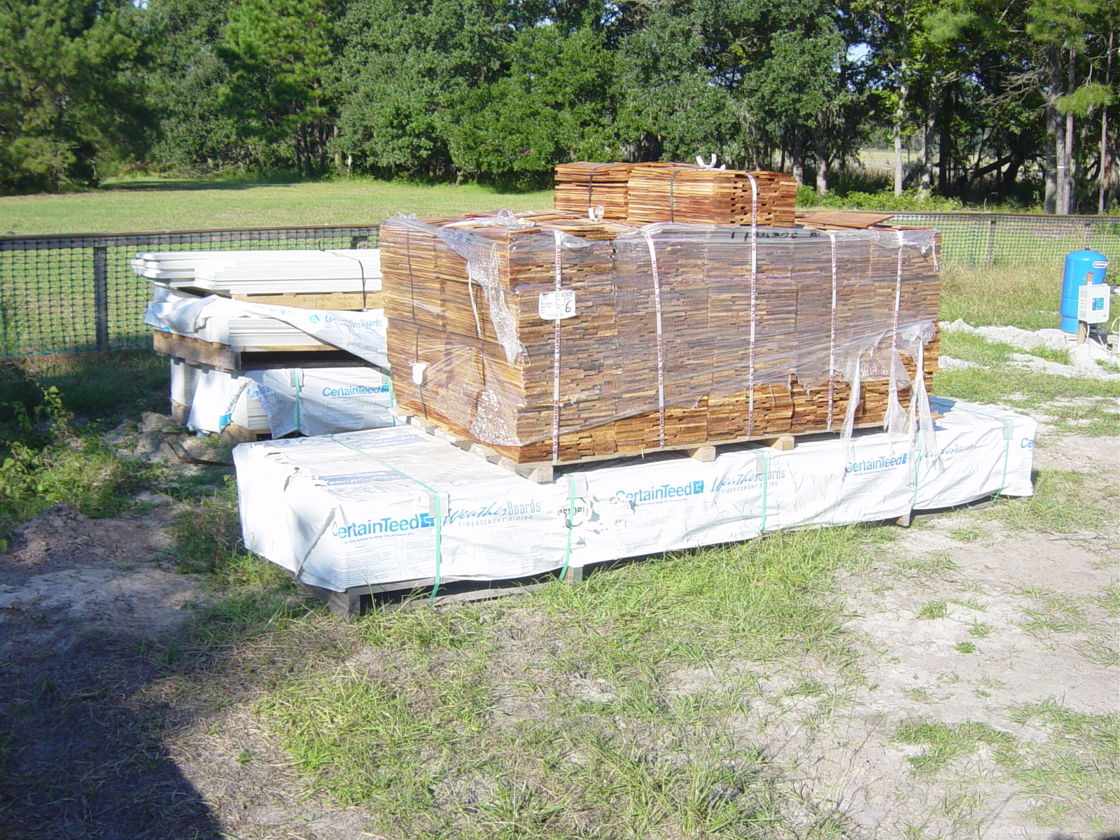 October 2, 2008 -- All of the siding material is now on site. These are the cedar shingles which will be used to side some of the gables. | ![]() |