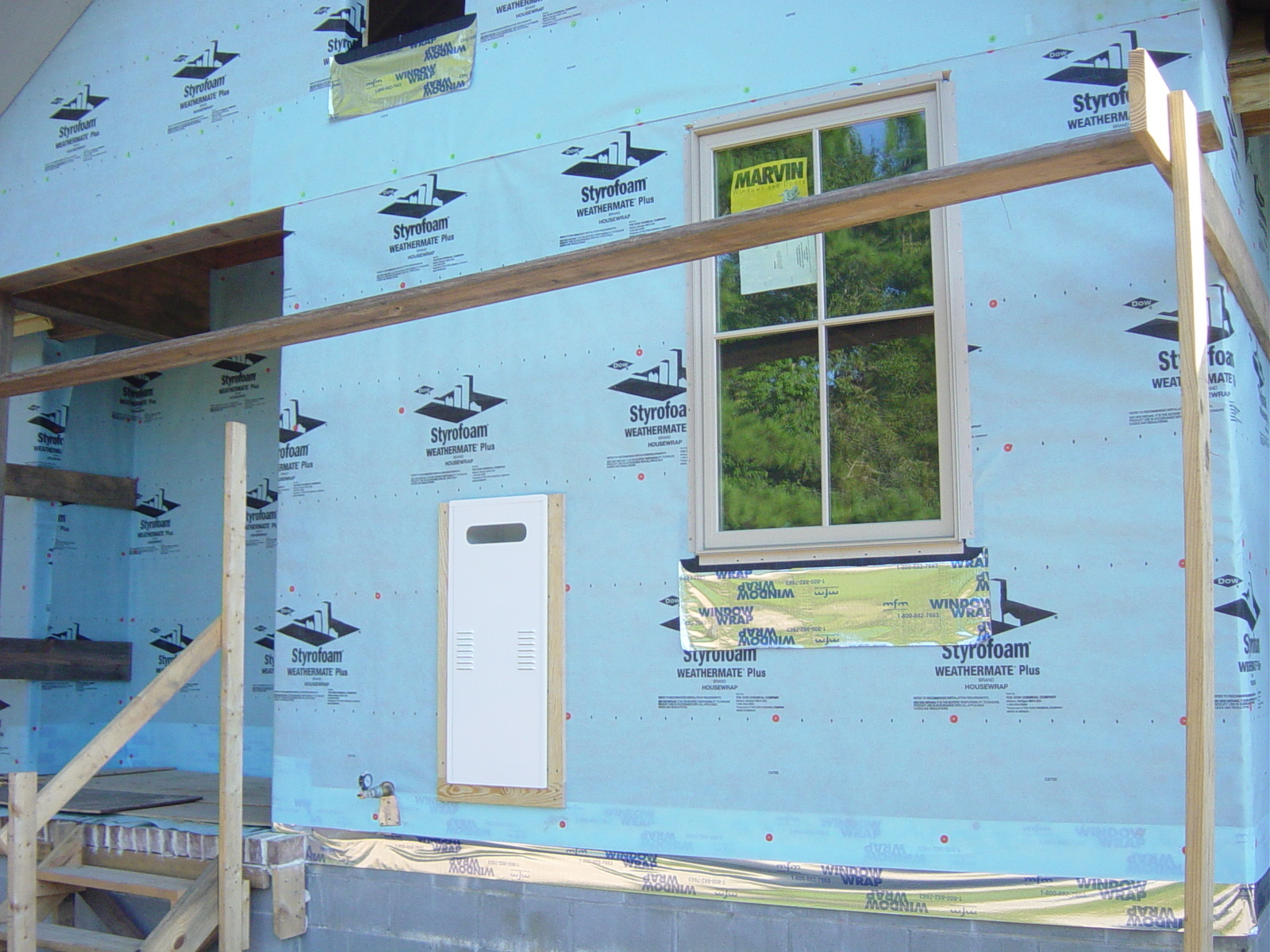 October 6, 2008 -- Here you can see the gas pipe coming out of the wall, the water heater inset box is installed and the window is also installed. | ![]() |