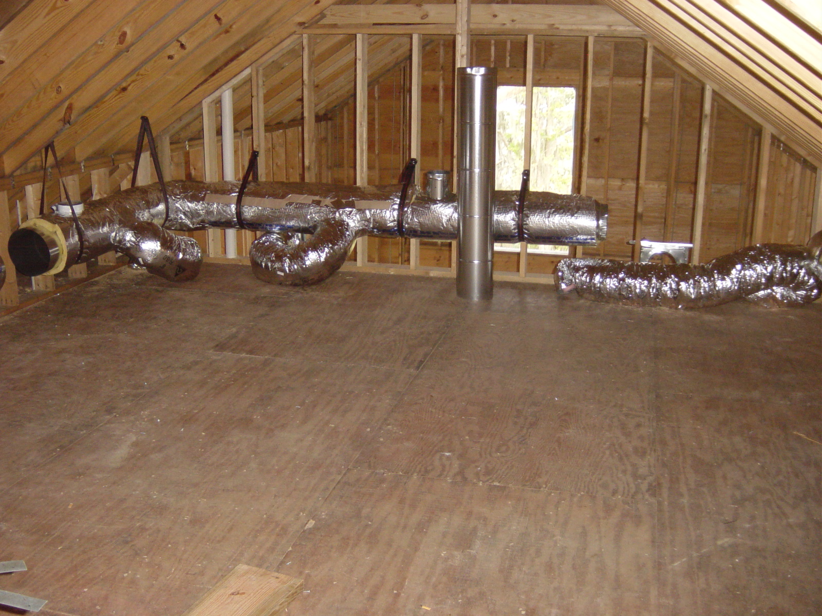 October 7, 2008 -- Heating and air conditioning rough-in started today. These ducts are over the master suite. | ![]() |