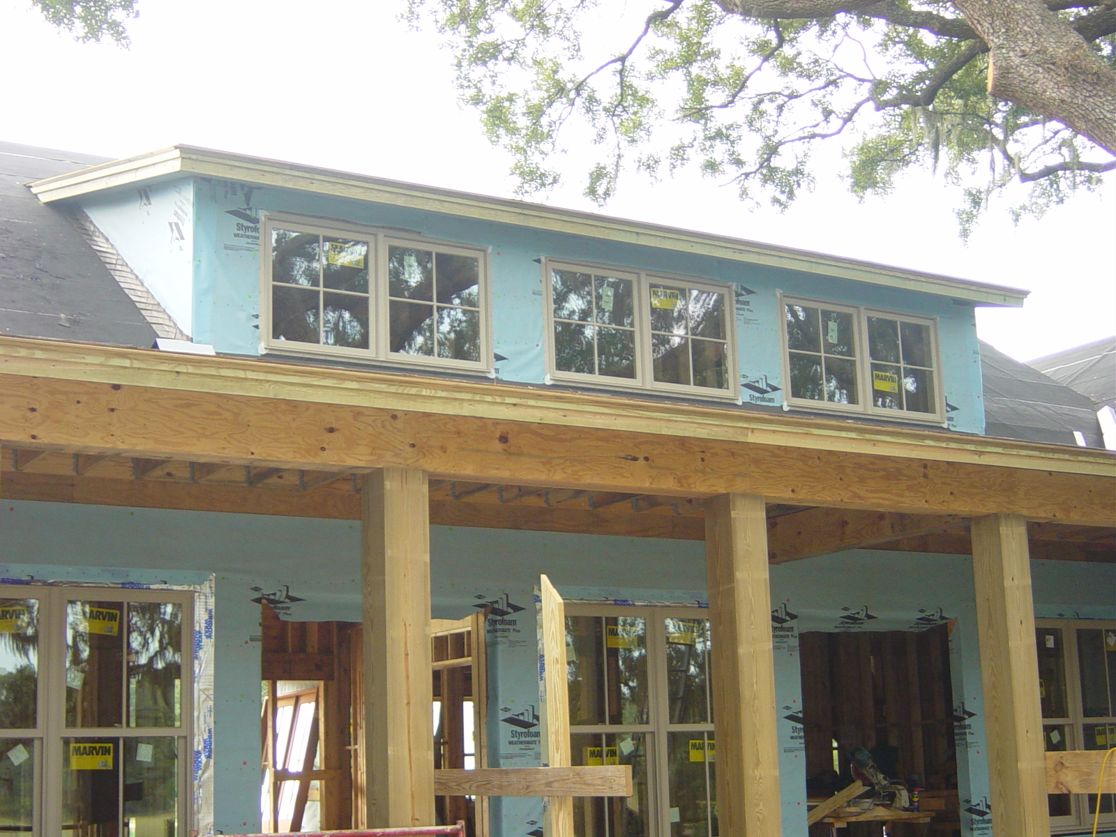 October 7, 2008 -- The windows are installed and the soffit and facia finished on the rear dormer above the living room. | ![]() |
