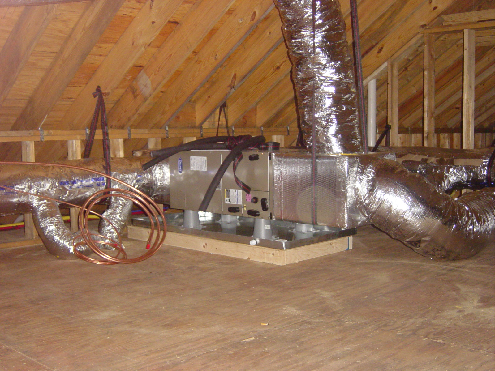 October 9, 2008 -- Heating and air conditioning rough-in is nearly complete. This unit serves the master bedroom suite. | ![]() |