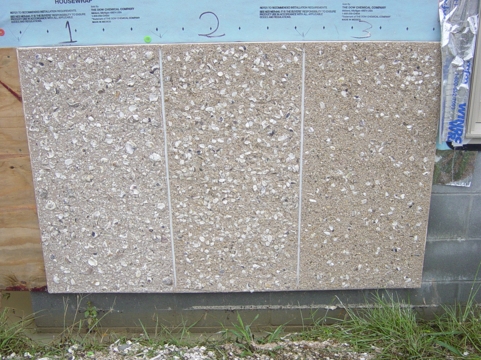 October 9, 2008 -- These are the three stucco samples made for the owner's approval. It rained last night so they are wet and a little darker than when dry. | ![]() |