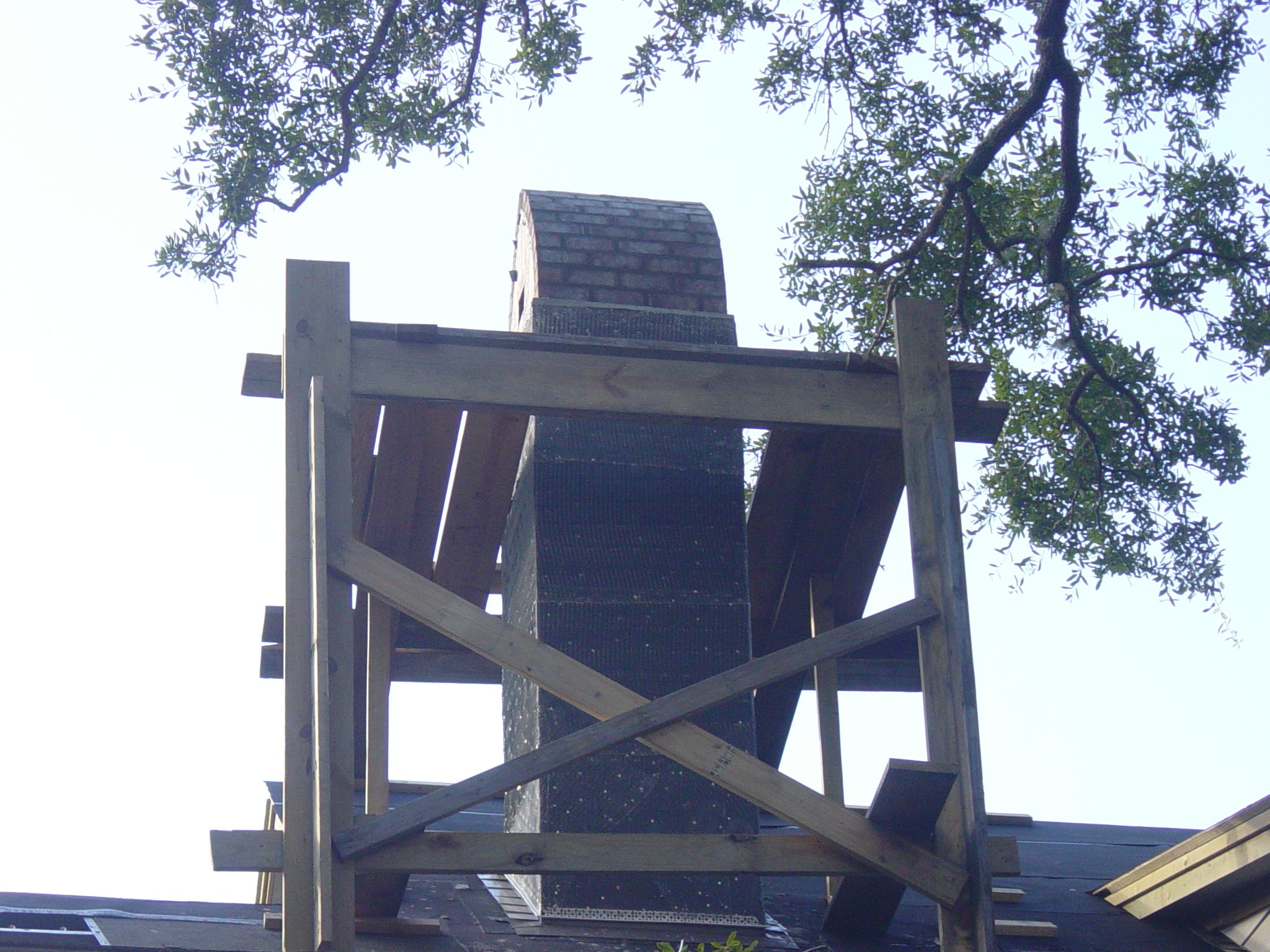 October 28, 2008 -- The chimney cap was rebuilt today. The first cap wasn't suitable for stucco so our brick mason rebuilt it for us. | ![]() |