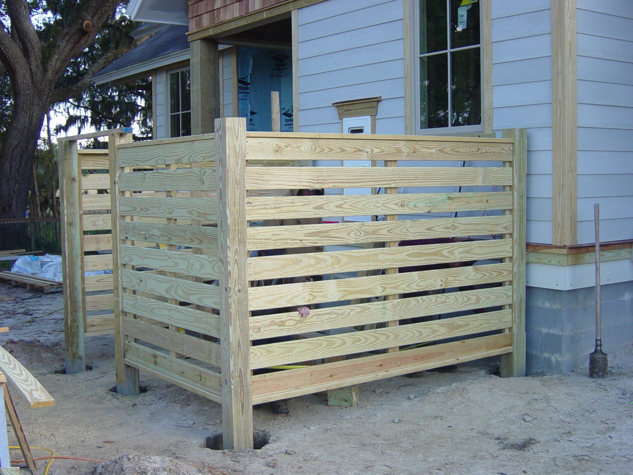 October 28, 2008 -- The service yard on the north side is progressing nicely. This one will have a brick border around the perimeter inset with concrete. | ![]() |