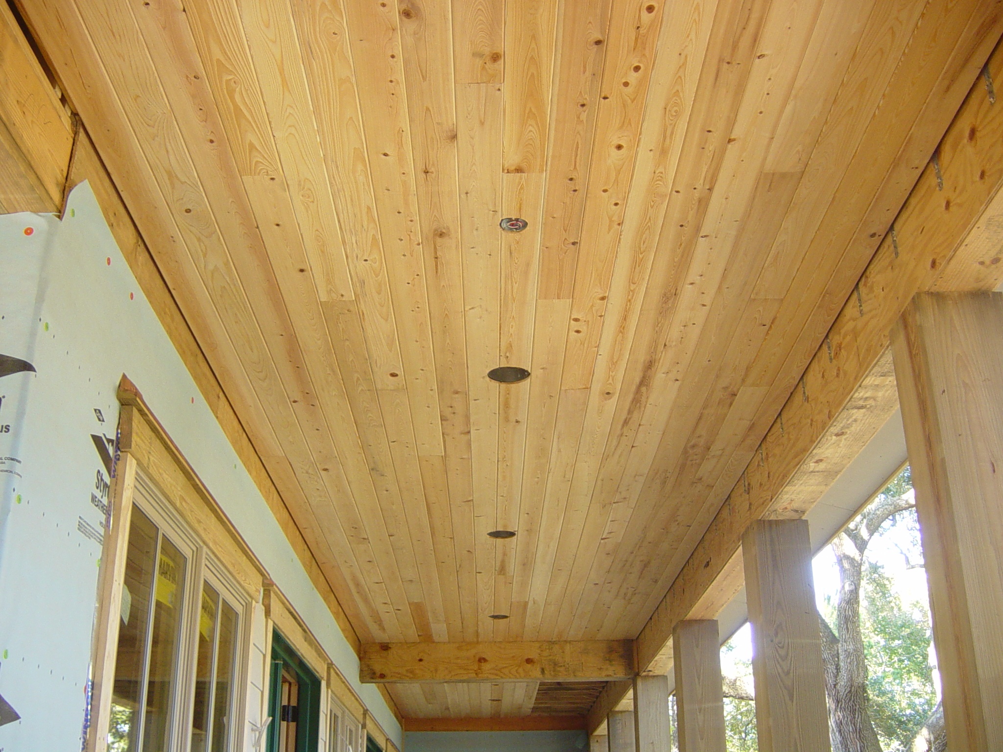 October 30, 2008 -- The rear porch ceiling is nearly complete now. Just a few more boards on the far end and they will be done. | ![]() |
