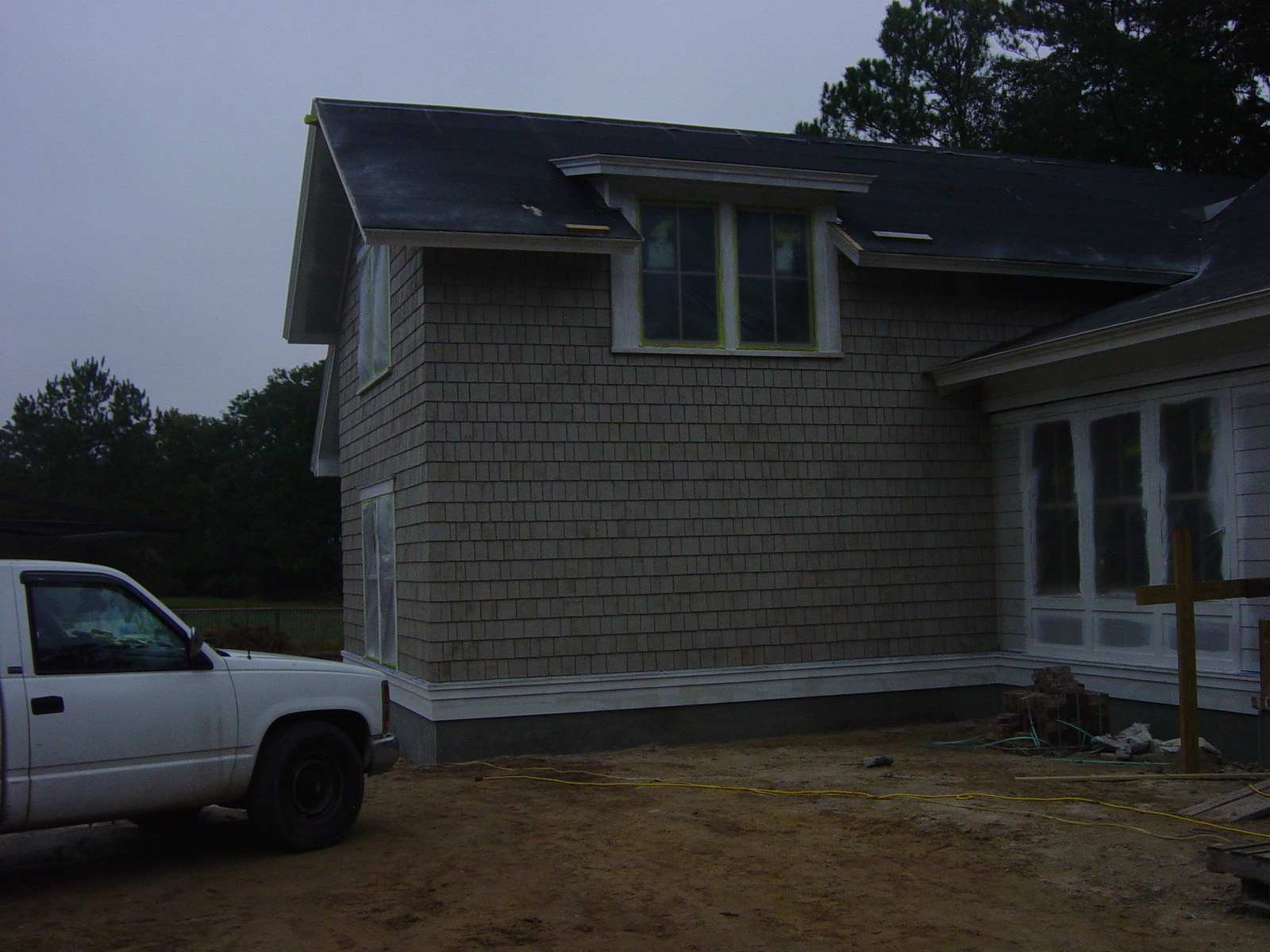 November 3, 2008 -- Here is the stain on the garage wall. They will have a more solid color after the final coat. | ![]() |