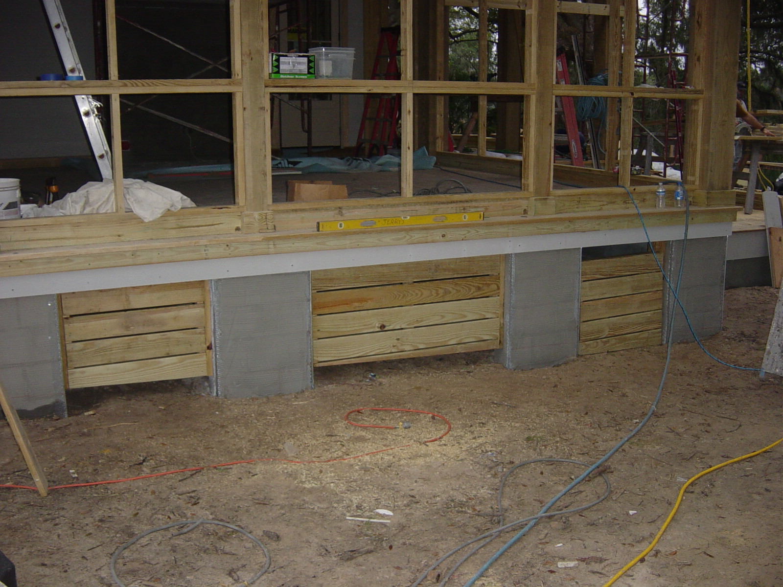 November 4, 2008 -- The fencing is being installed in the foundation walls. The section on the end will be hinged for access to the firewood rack. | ![]() |