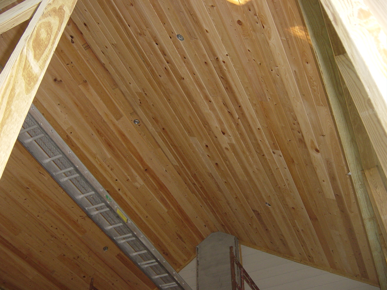 November 6, 2008 -- Here is a picture of the public screened porch vaulted ceiling with the cypress boards installed. This photo is looking nearly straight up. | ![]() |