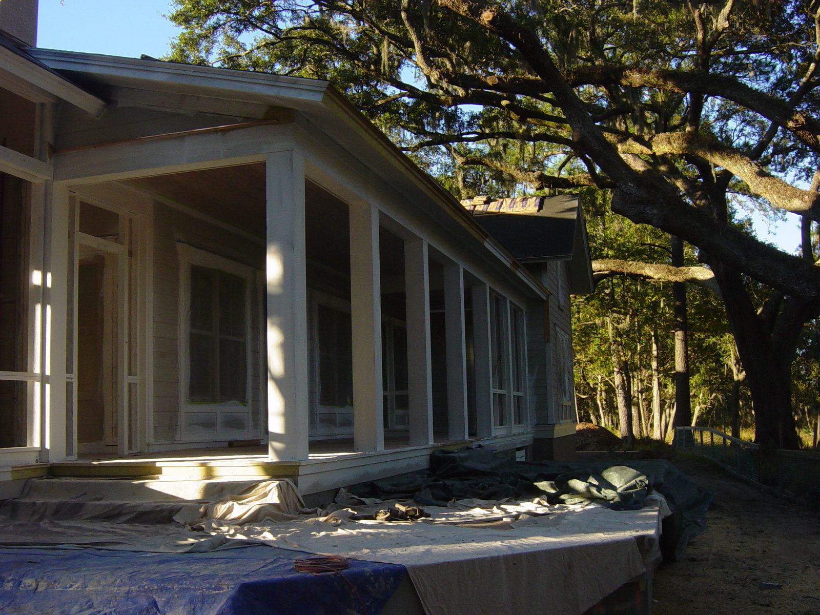 November 7, 2008 -- The back porches are cleared off and masked up and are being painted. The back of the house will be finished up next week. | ![]() |