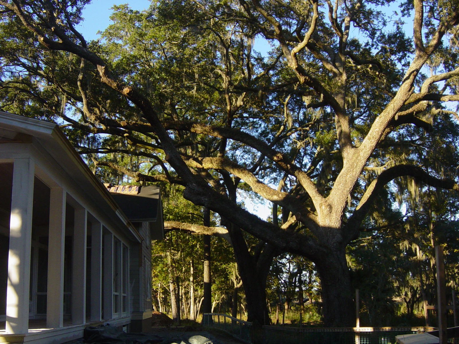 November 7, 2008 -- These are two of the four majestic live oaks that overhang and shade the rear of the house. | ![]() |