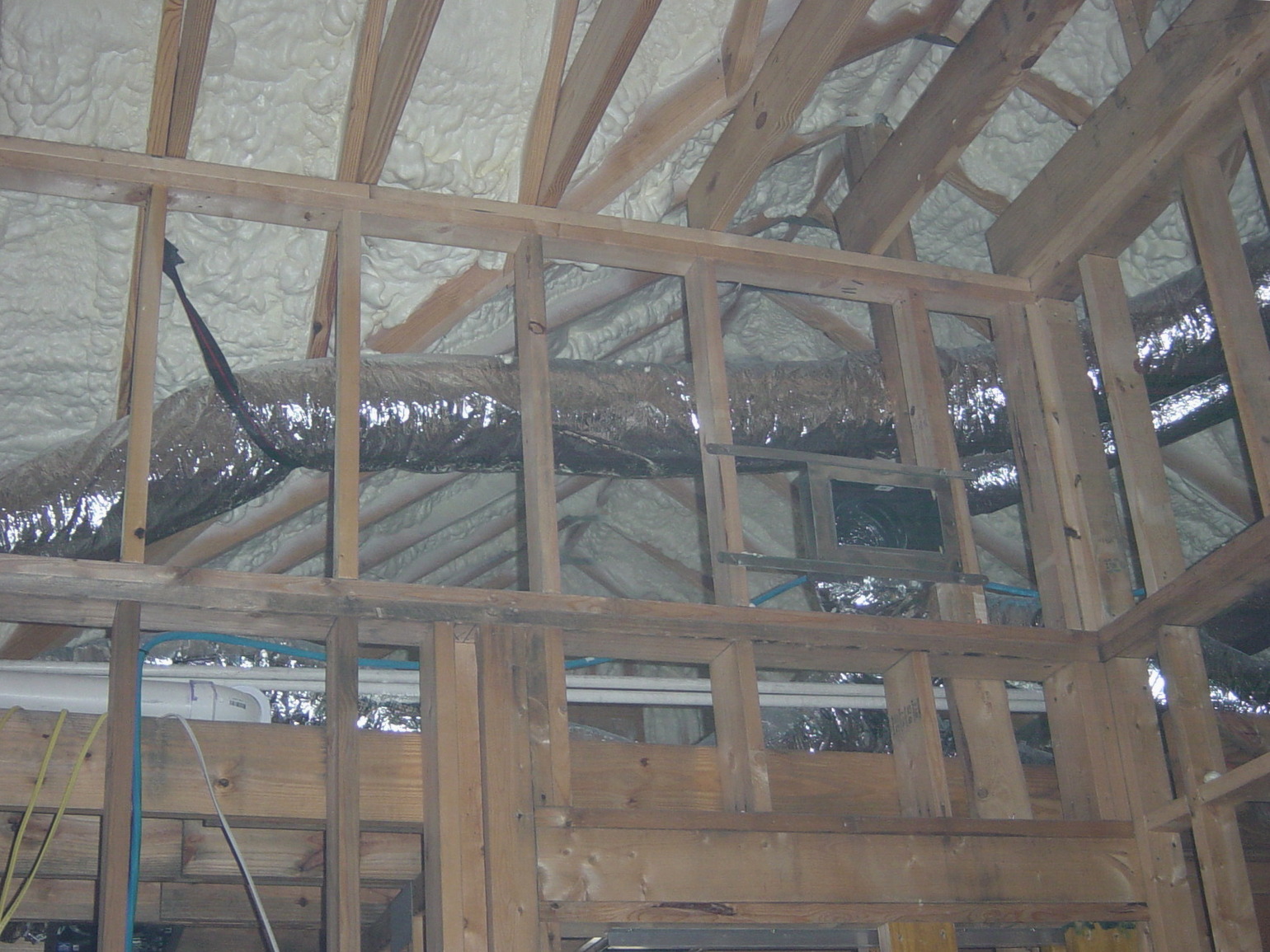 November 17, 2008 -- The foam insulation is sprayed into every framing cavity and fills in completely with no gaps. | ![]() |
