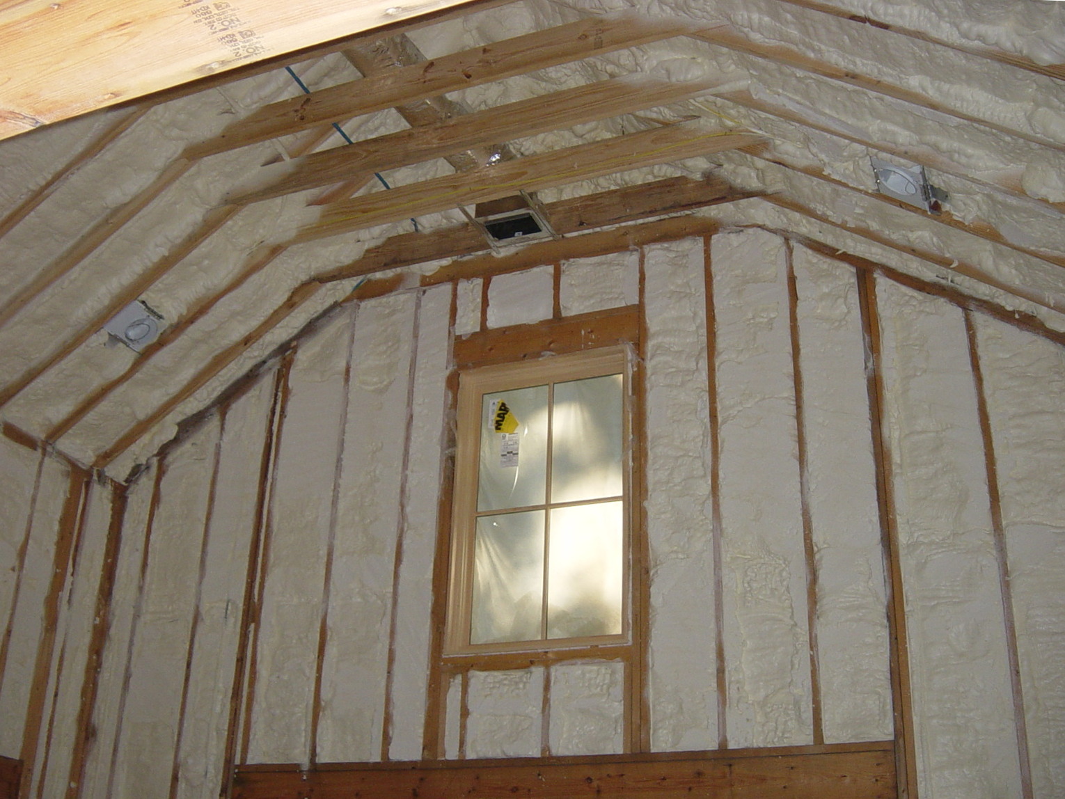 November 20, 2008 -- All of the exterior walls and the roof were insulated with Icynene open-cell spray-foam insulation. This is the master bedroom. | ![]() |