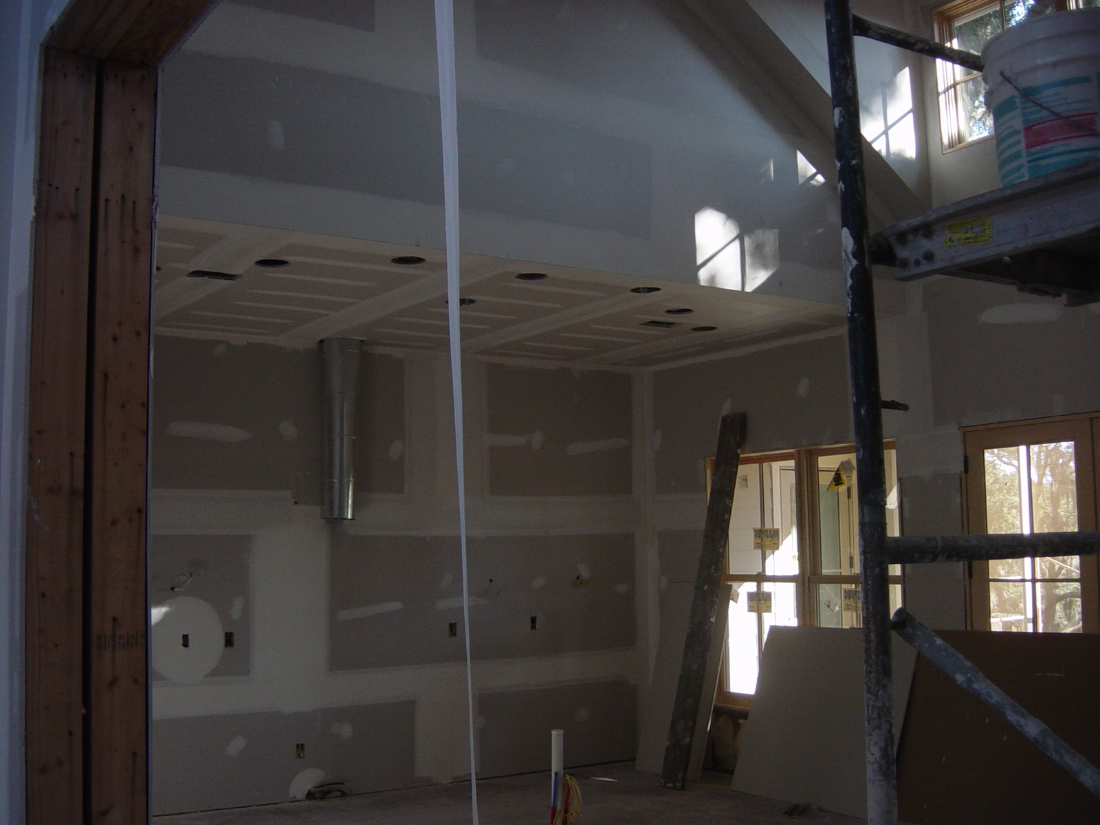 December 1, 2008 -- Drywall finishing began on Friday. They could not do more finishing on Monday because Drywall compound dries slowly when it is cold. | ![]() |