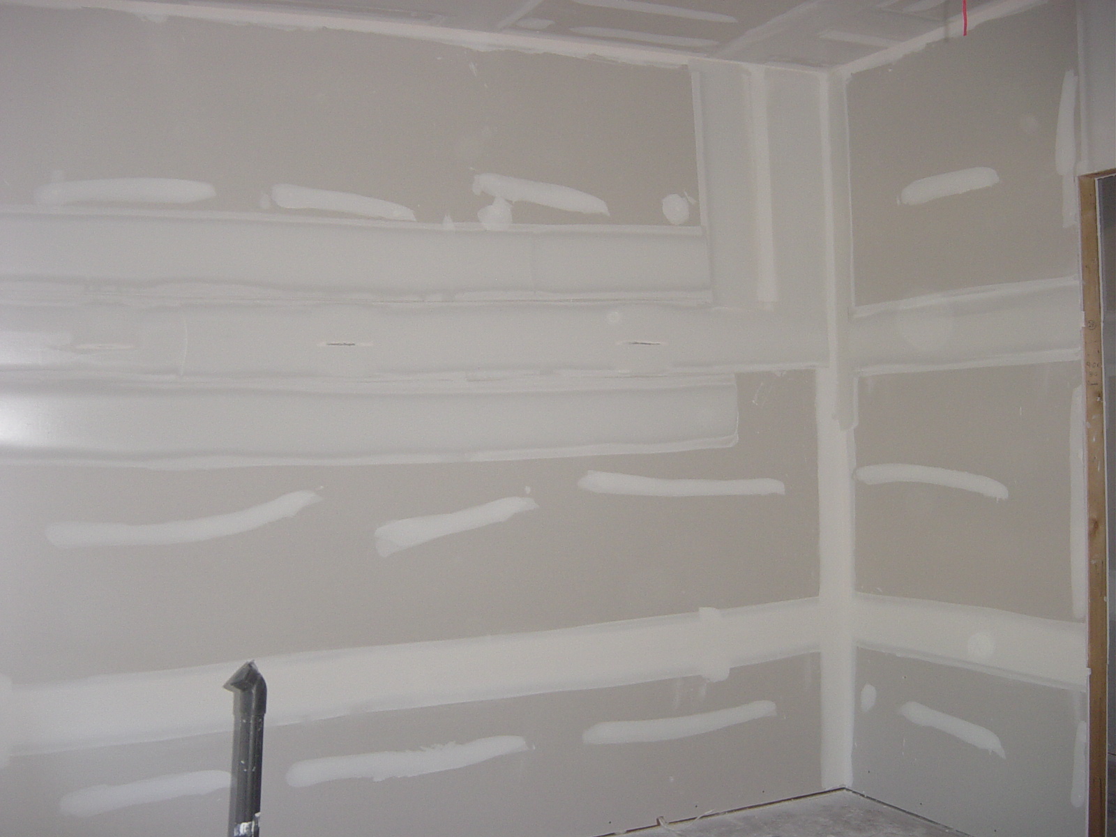 December 2, 2008 -- Here is more of the drywall finishing. A really wide area was mudded to make the wall smoother where the joint is. | ![]() |