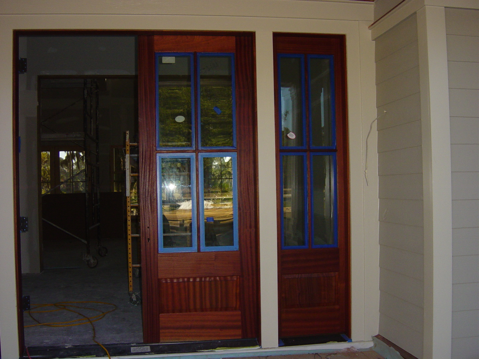 December 2, 2008 -- This is the front door with one coat of spar varnish on it. It will be sanded and recoated to give the final finish. | ![]() |