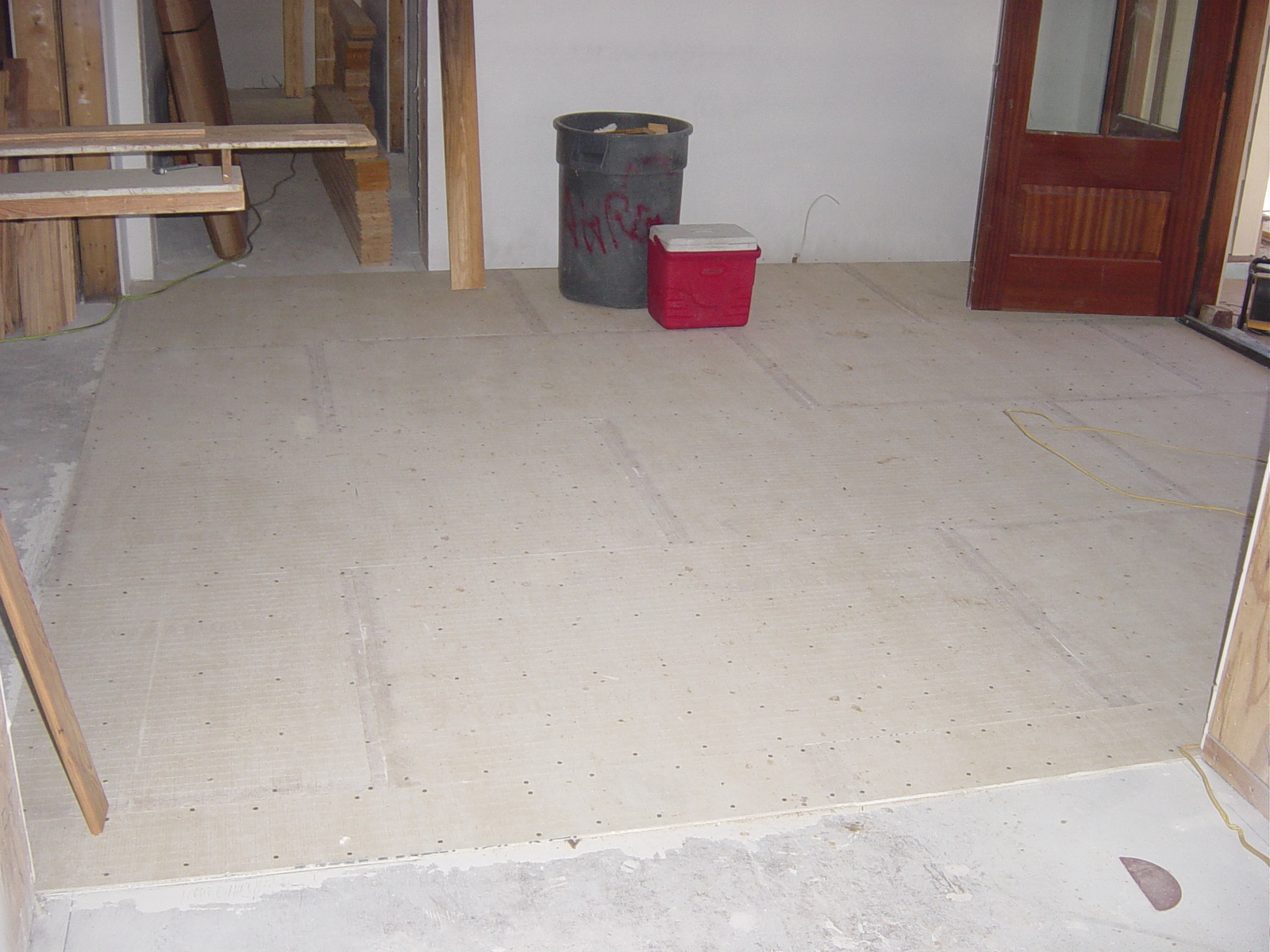 December 12, 2008 -- The floor of the foyer is now prepared for slate. | ![]() |