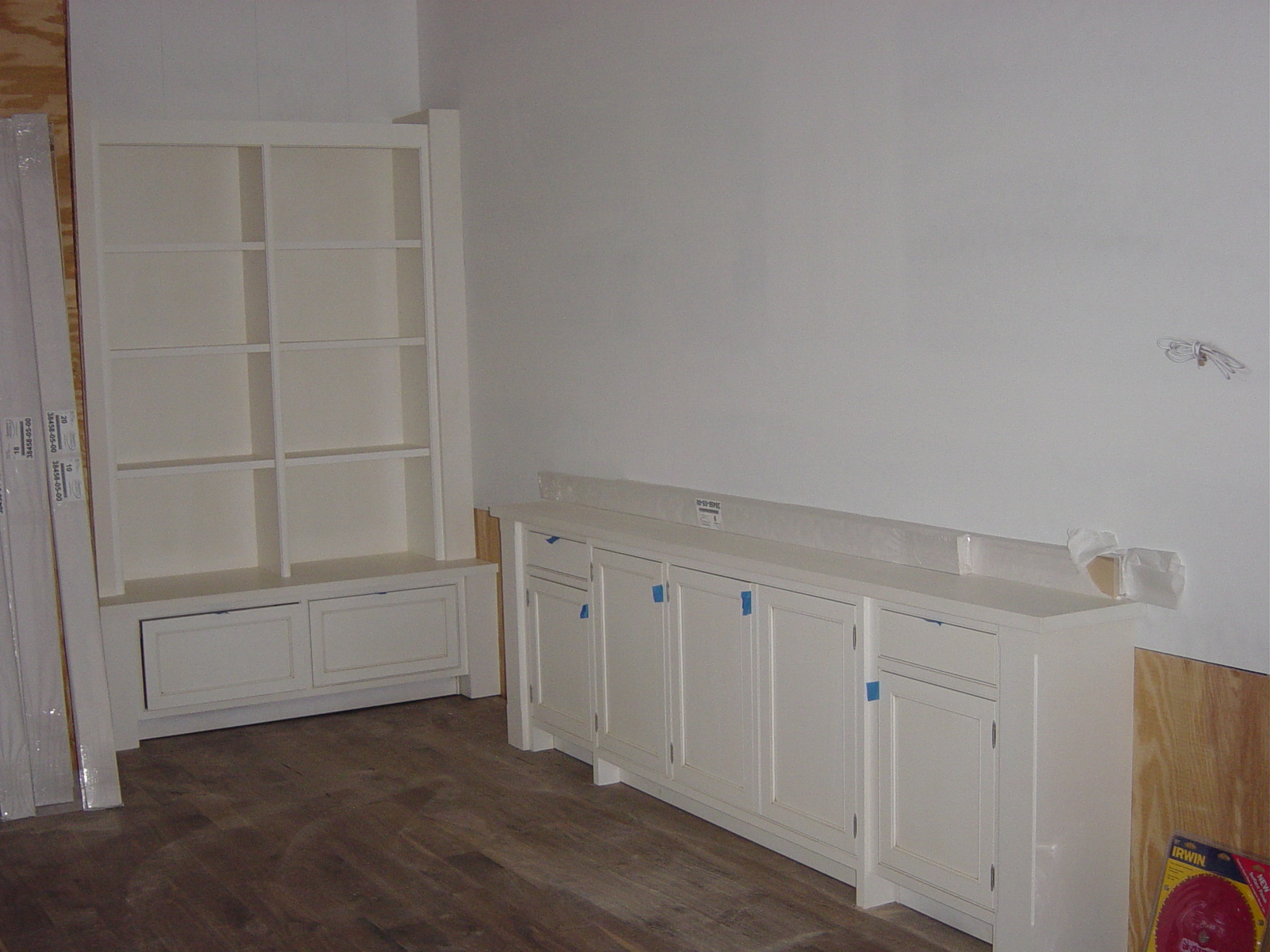 December 23, 2008 -- These two cabinets in the great room are set in place. The base and top trims still have to be installed. | ![]() |