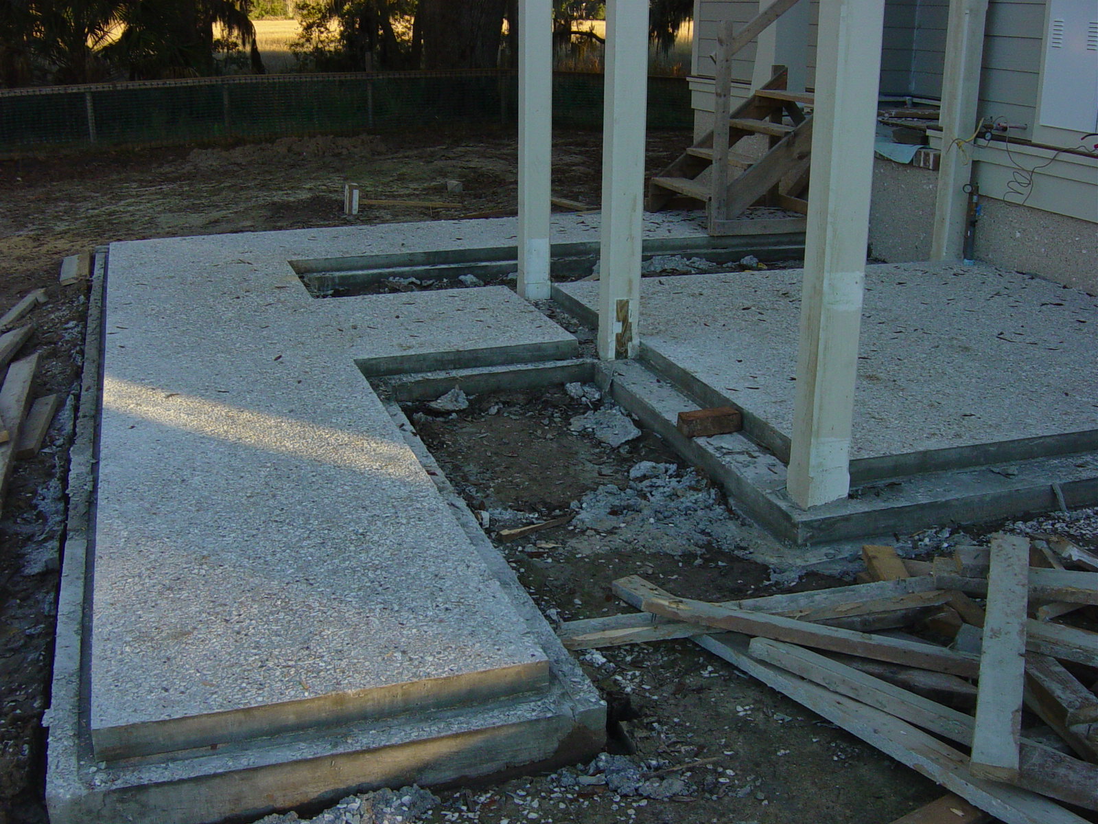 December 24, 2008 -- The service yard and owner's walk have been poured now with tabby concrete. There will be a brick border installed around the perimeter. | ![]() |