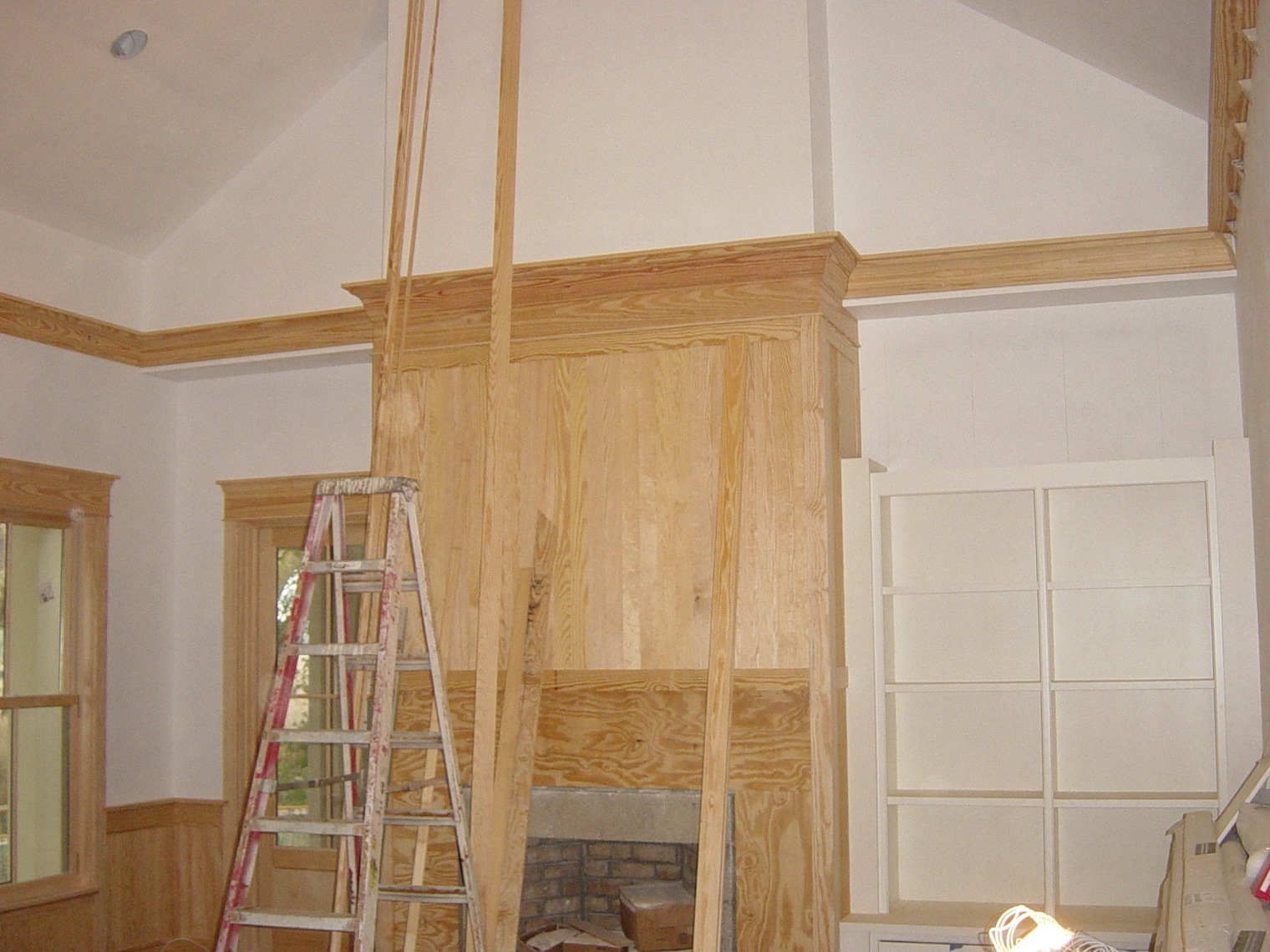 January 13, 2009 -- All of the fireplace wall trim is installed with the exception of the mantle. It will be installed after the stone around the firebox. | ![]() |