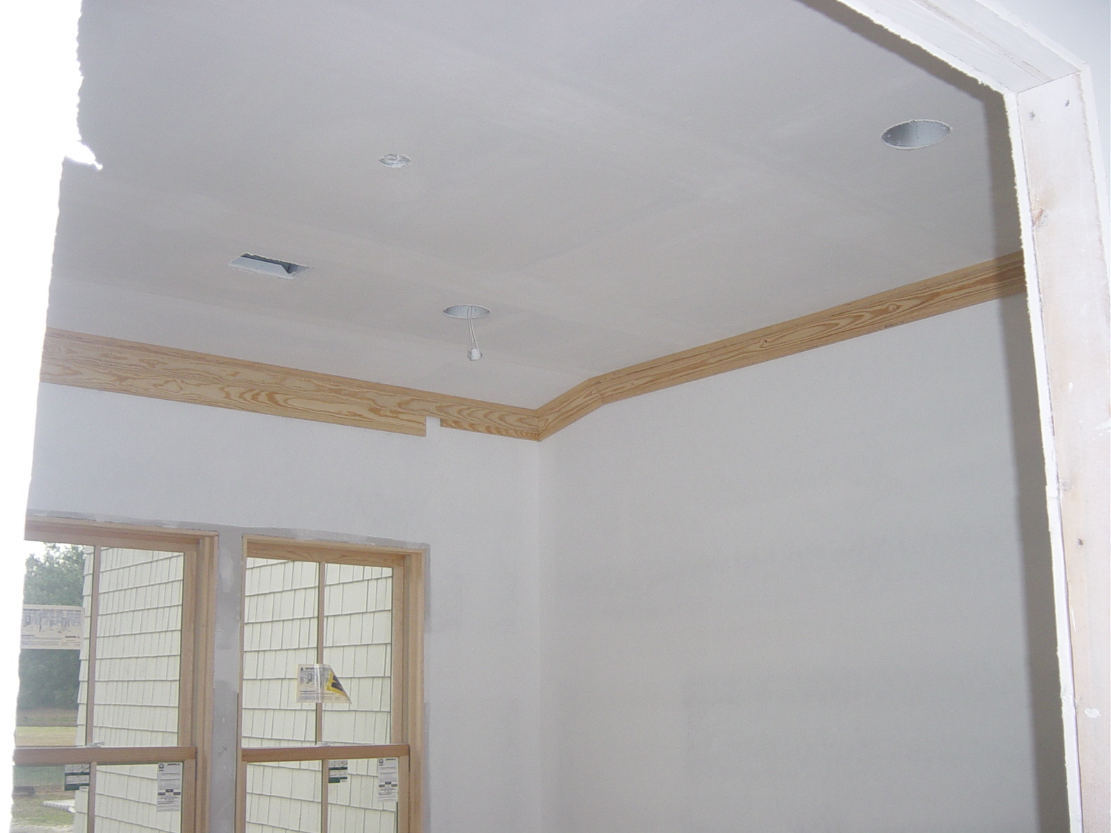 January 13, 2009 -- This is the crown moulding in the study. It was challenging to run down the slope and along the angled ceiling, but we did it. | ![]() |