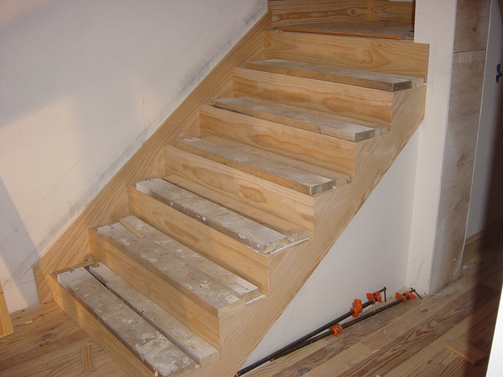January 26, 2009 -- The stair skirt and risers are installed and ready for the treads as soon as they arrive. | ![]() |
